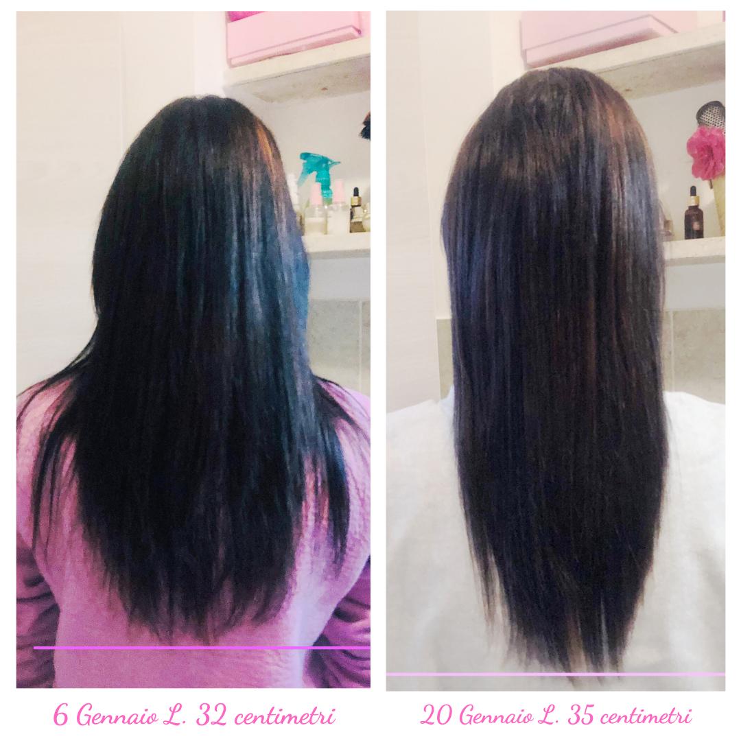 Il risultato? Capelli più forti, voluminosi e una crescita accelerata rispetto al normale ritmo mensile.